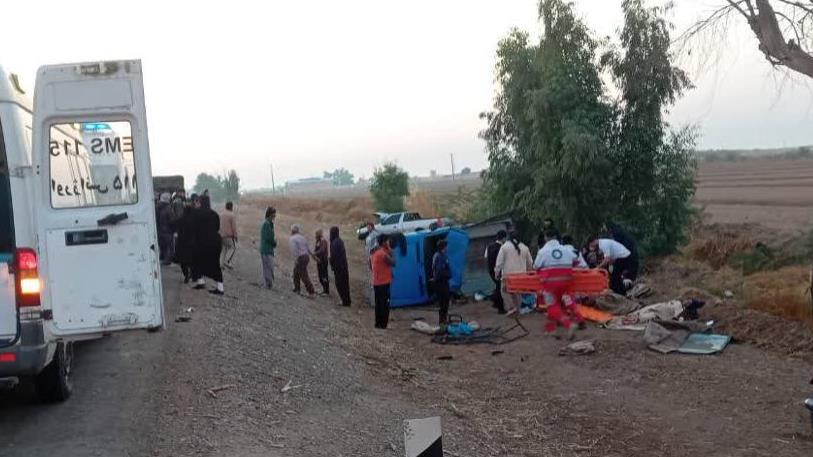 ۱۶ مصدوم و ۲ جان باخته بر اثر واژگونی اتوبوس در محور شوش به اهواز