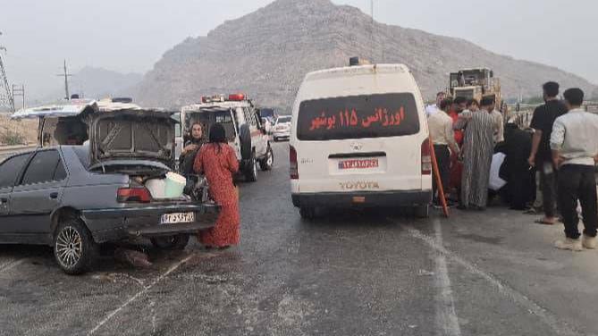 تصادف دو خودرو پژو پارس و پژو ۴۰۵ با ۵ مصدوم و ۲ جان‌باخته در جاده ساحلی بوشهر