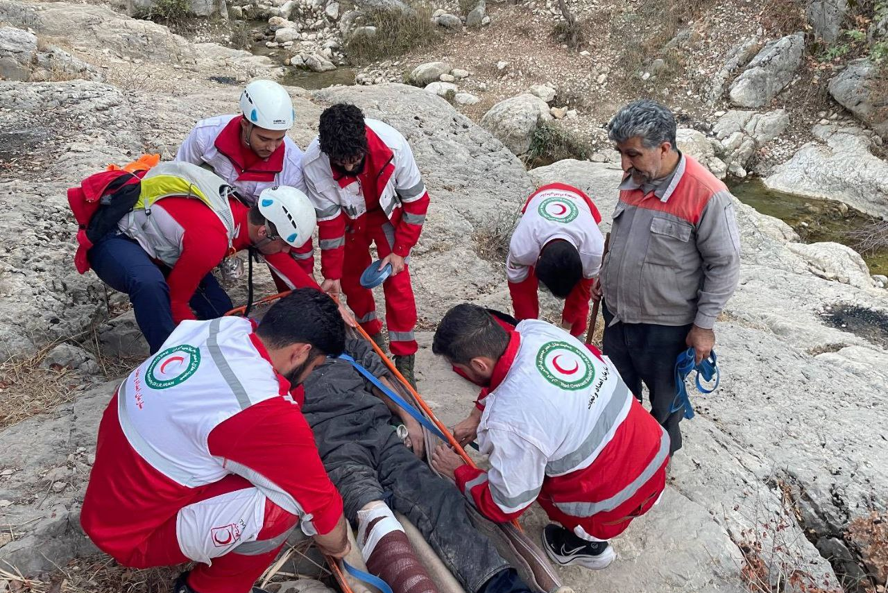 ۱۰ ساعت عملیات نفس‌گیر نجات مرد سقوط‌کرده از ارتفاعات کوه دیل گچساران