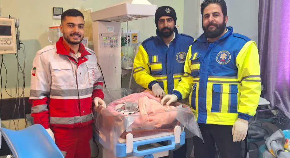 طاهری ادامه داد: پیش از رسیدن نیروهای امدادی، خواهر این مادر باردار با راهنمایی تلفنی مرکز اورژانس، زایمان را انجام داده بود و پس از حضور تیم‌های هلال‌احمر و اورژانس در محل، اقدامات تخصصی از جمله تخلیه جفت، کنترل و قطع بند ناف، اکسیژن‌تراپی، سرم‌تراپی و کنترل خونریزی انجام شد.